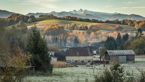 The relais milord: South facade with view on the chain of the Pyrenees
